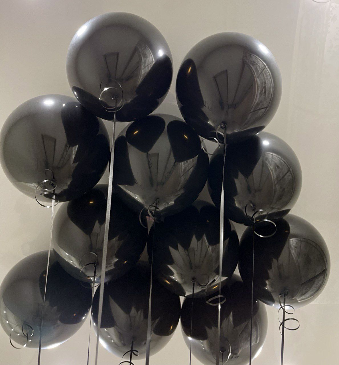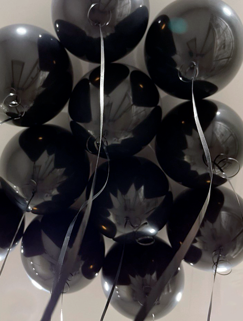 - 11 шаровчёрного цвета с гелием и ленточками.