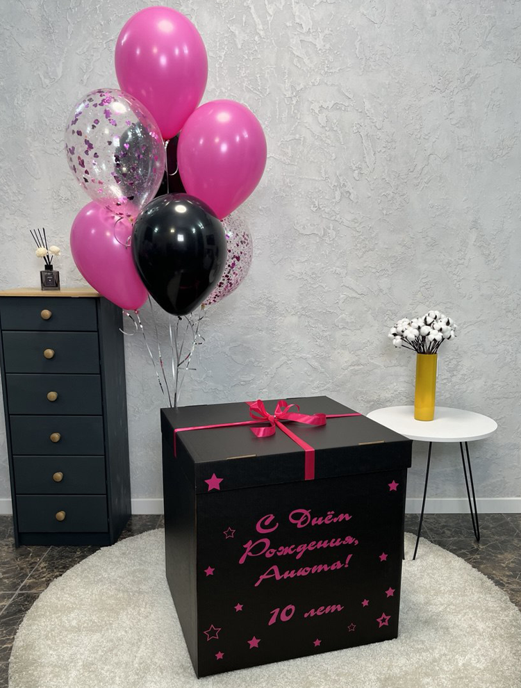 Коробка-сюрприз чёрная с 7 шарами внутри
