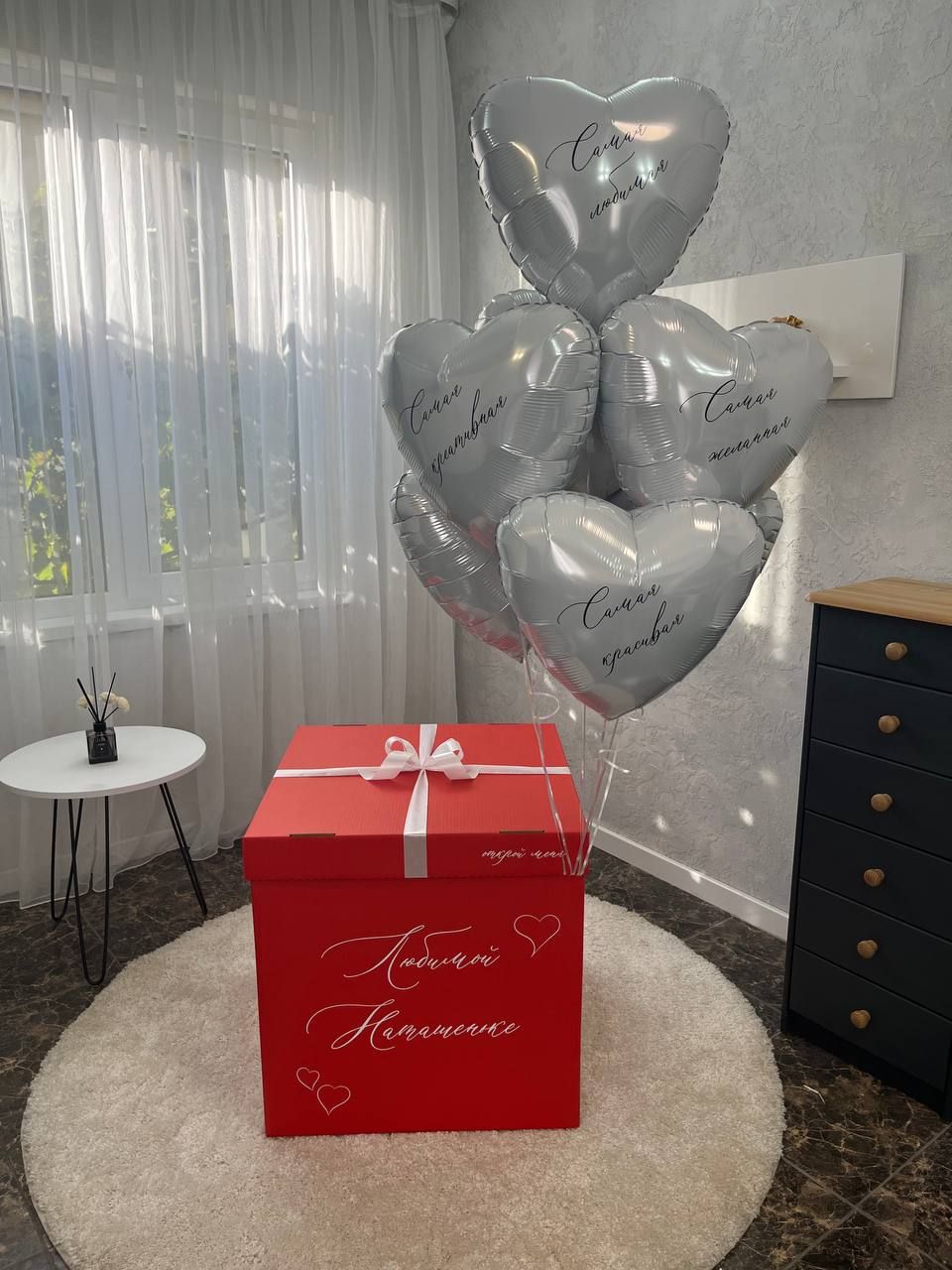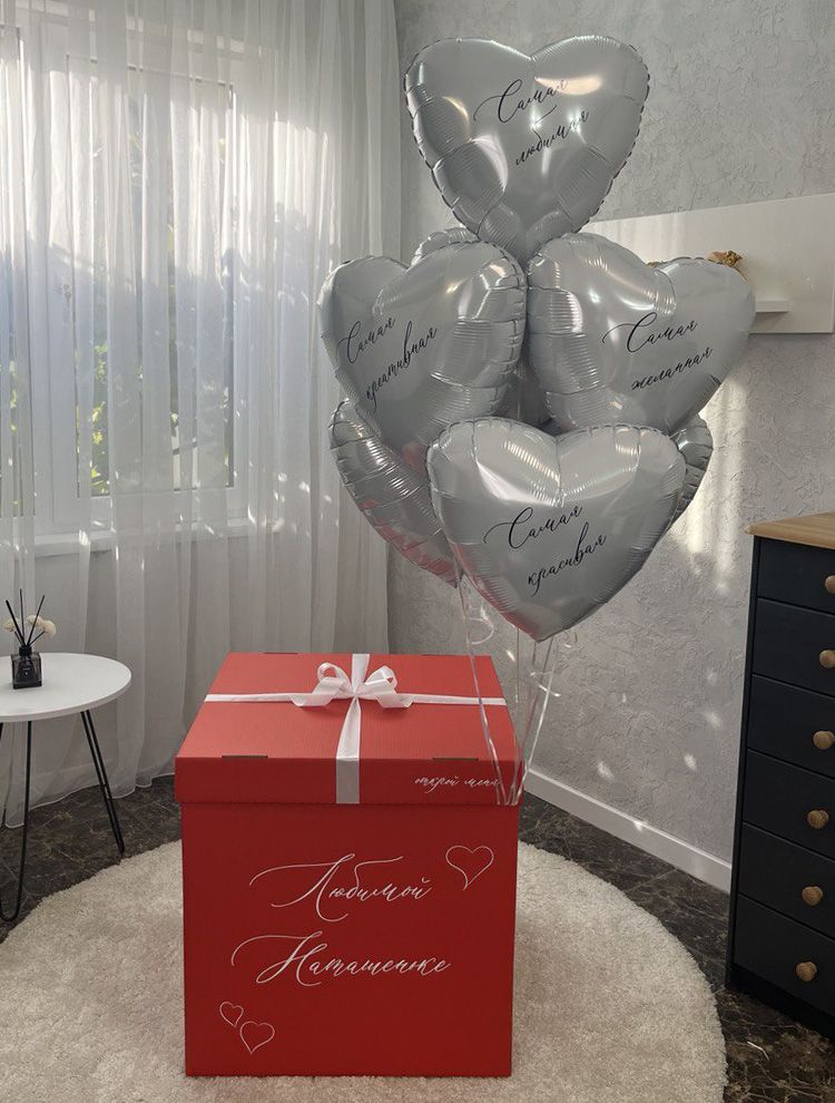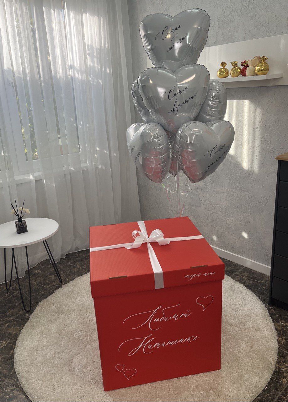 - оформленная коробка-сюрприз (60х60 см) с бантом и любой надписью;
