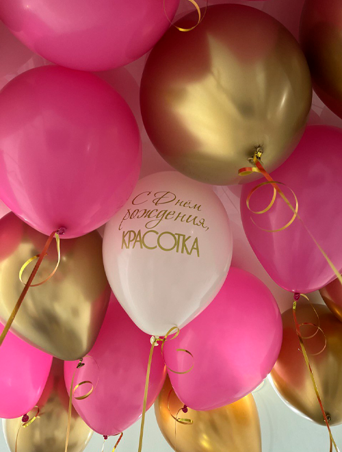 - 1 белый шар с надписью "С Днём Рождения, Красотка".