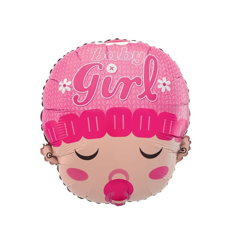 Воздушный шар выполнен в виде головы малышки в шапочке с соской. Отличное дополнение к набору шаров на выписку из роддома или на рождение ребёнка.