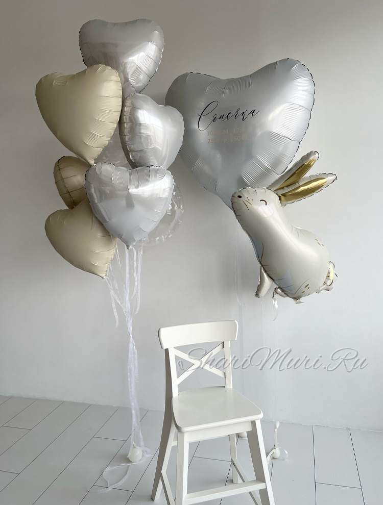 - фонтан, в котором 6 сердечек и 2 прозрачных шара баблс 45 см с наполнением;