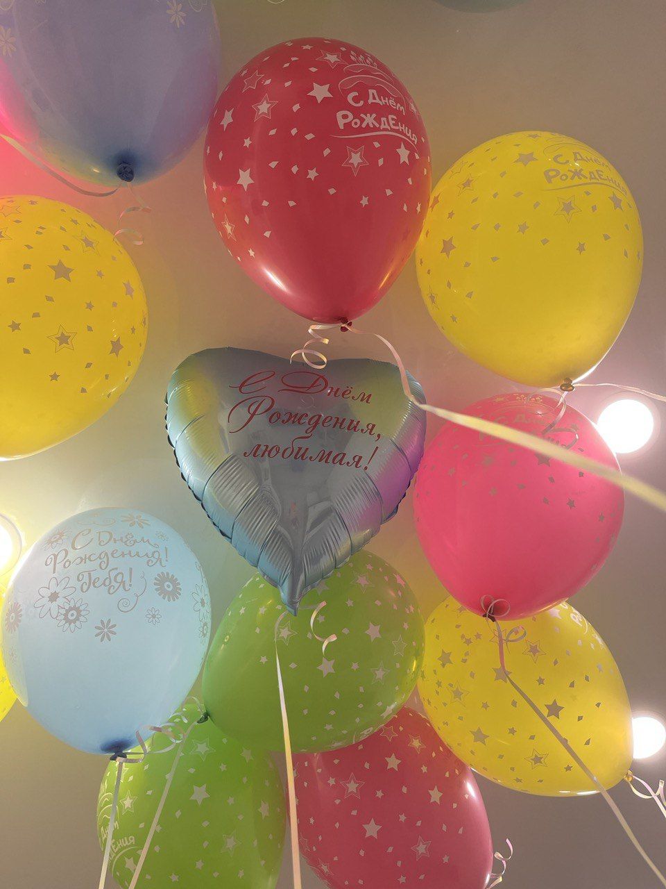 Шары разноцветные С Днём Рождения и сердечко с любой надписью 15 штук под потолок